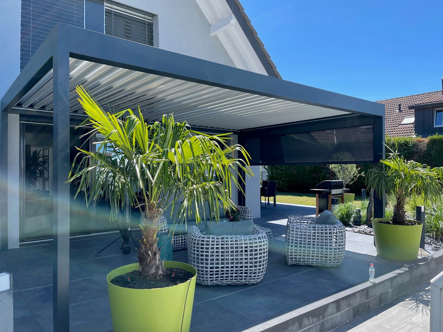 Pergolas bioclimatiques sur mesure en Suisse. Design, confort et durabilité pour sublimer votre terrasse.
